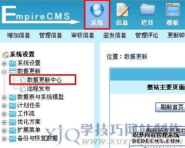 帝国CMS的数据更新中心为批量生成整站页面的功能详解