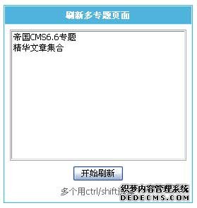 | 刷新多栏目页面:选择多个指定栏目进行生成操作。 |