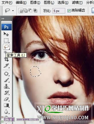 消除斑点的方法有很多,如果精度要求不高的话可以用下面的方法来处理。大致过程:先用修补工具把斑点部分去除,然后用选区工具选取祛斑后肤色过渡不自然的部分,适当羽化后直接模糊处理。然后再用滤镜添加一些肤色细节即可。 最终效果