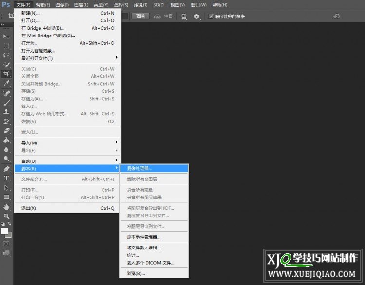 开启了Photoshop之后(示范版本为CC),点击左上角 文件→脚本→图像处理器即可。